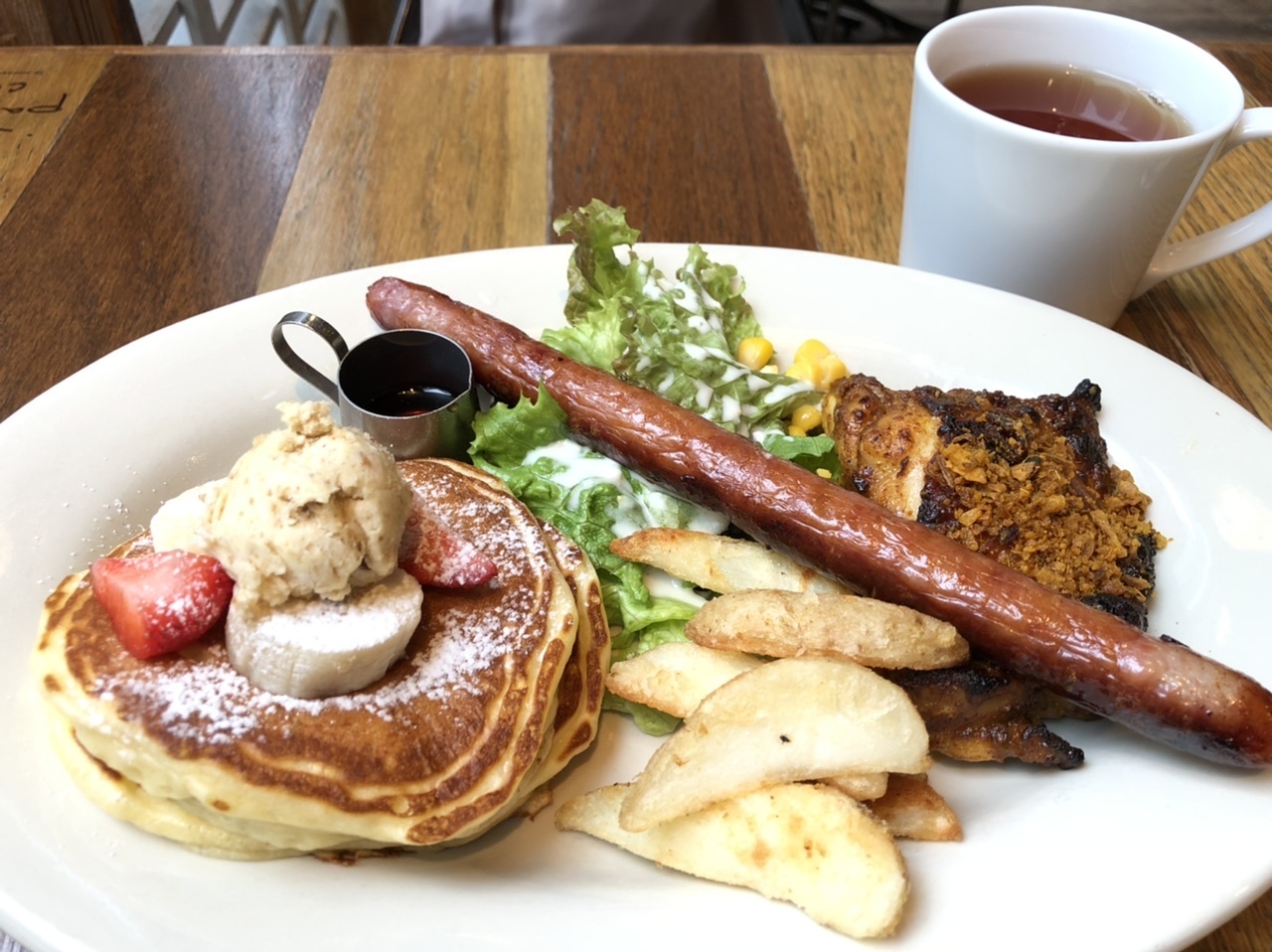 みなとみらいのマークイズの1階に入っている、ジャーナル・スタンダードのパンケーキ専門店です。フロアの隅っこにあり、手前がジャーナルスタンダードのショップなのでちょっとわかりづらいかも。
