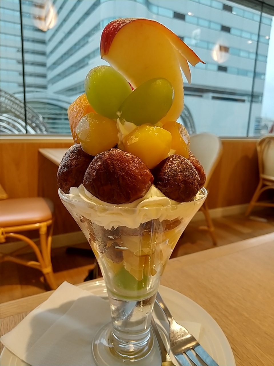 グラス部分には栗がつまっていて、しかも甘露煮がほとんどでこれが硬くてさほど美味しくない。ほっくりした渋皮煮は美味しかったけれど、数は少ない。