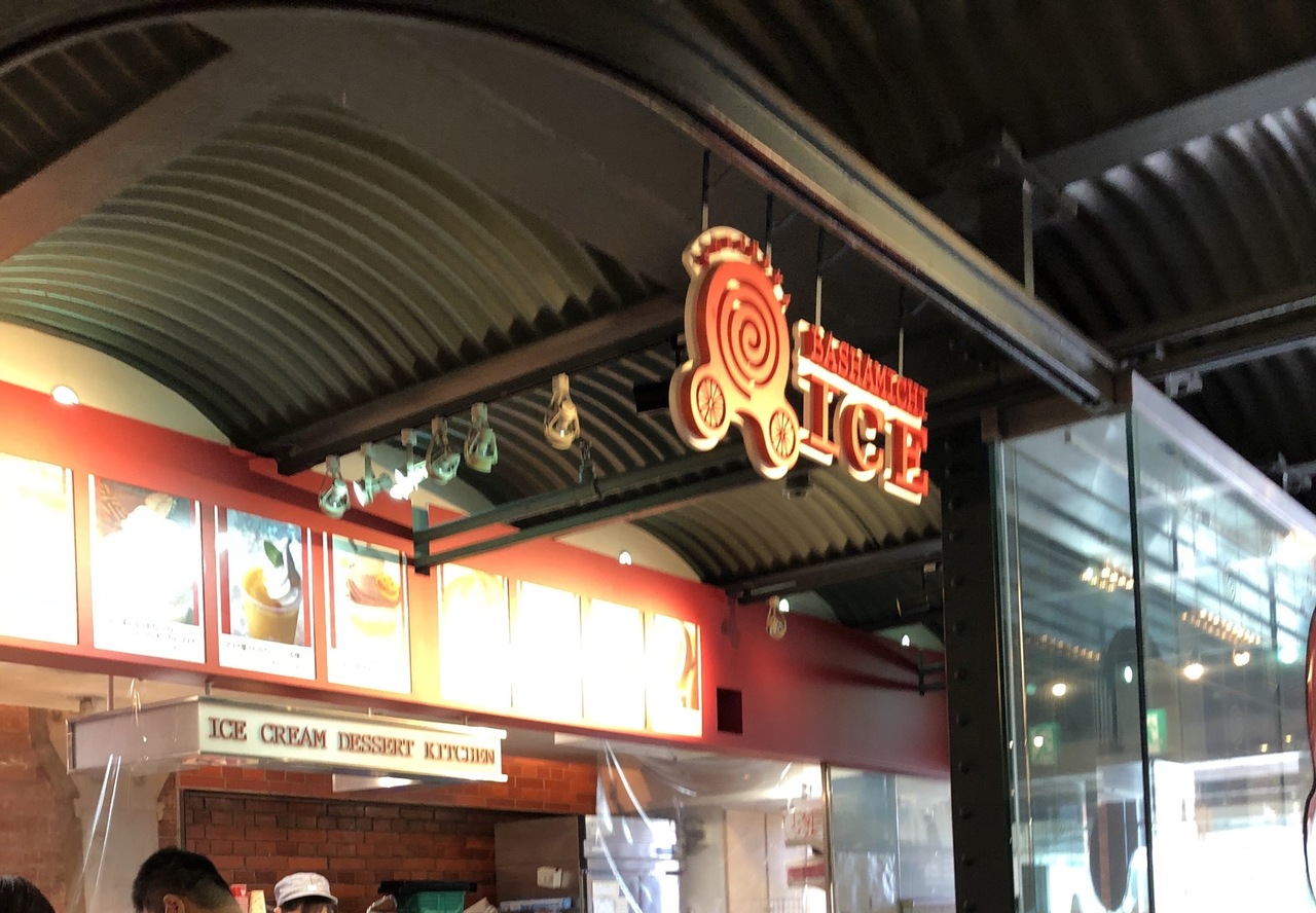 みなとみらいの赤レンガ倉庫2号館の1階出入り口付近に、馬車道アイスのお店が入っています。アイスクリームは横浜発祥なのだそうで、馬車道アイスというのは今の普通のアイスよりちょっとサッパリしている気がします。こちらのカップサイズのものを買って、外の階段に座って食べている人が多いですね。