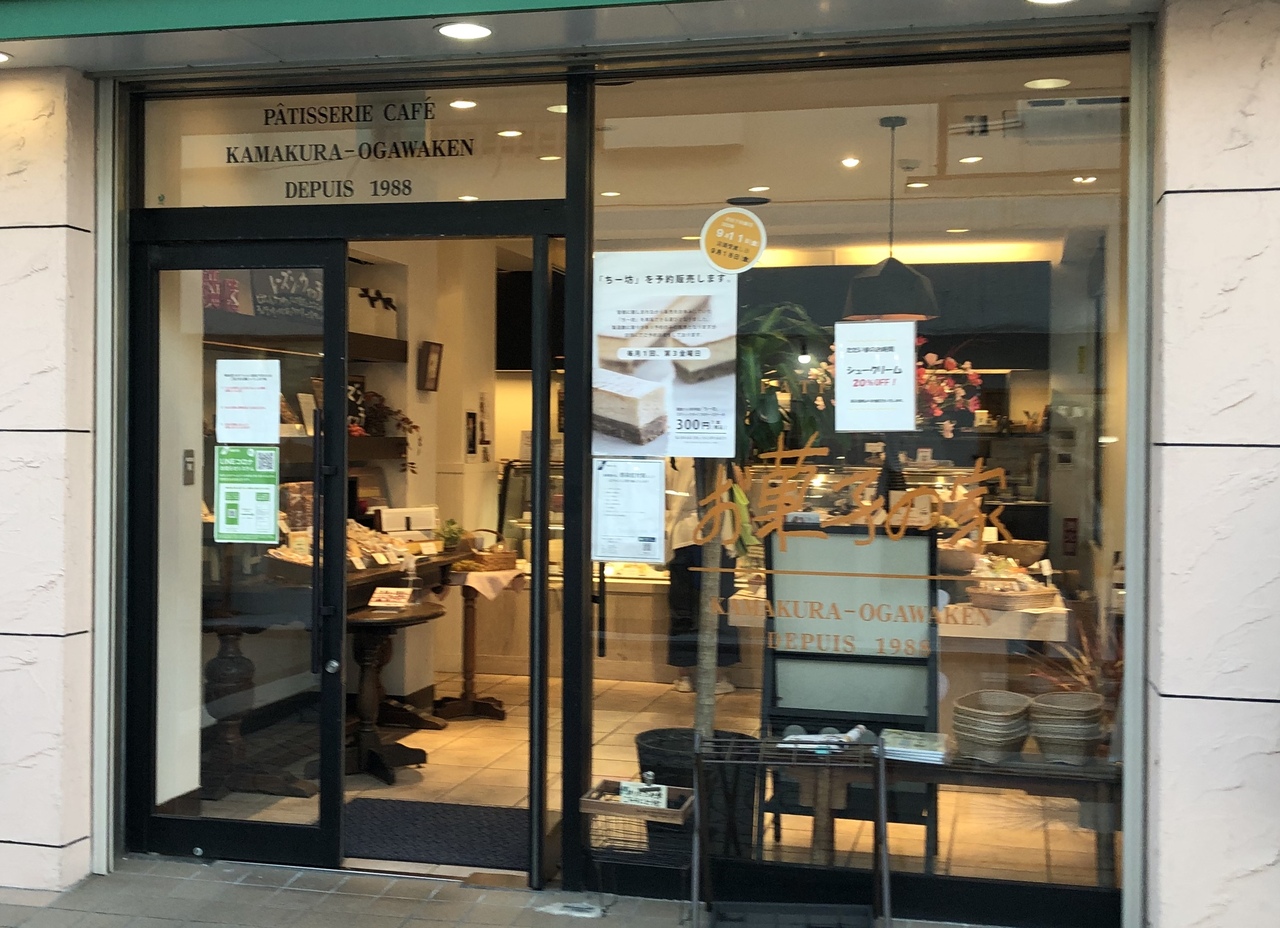 鎌倉駅の西口側、御成町商店街の角に鎌倉小川軒の売店があります。