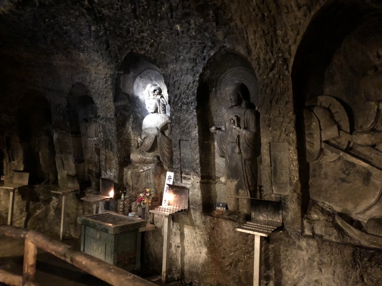 鎌倉の長谷寺の中にある洞窟で、中に弁天様はじめ沢山の仏様が彫られています。