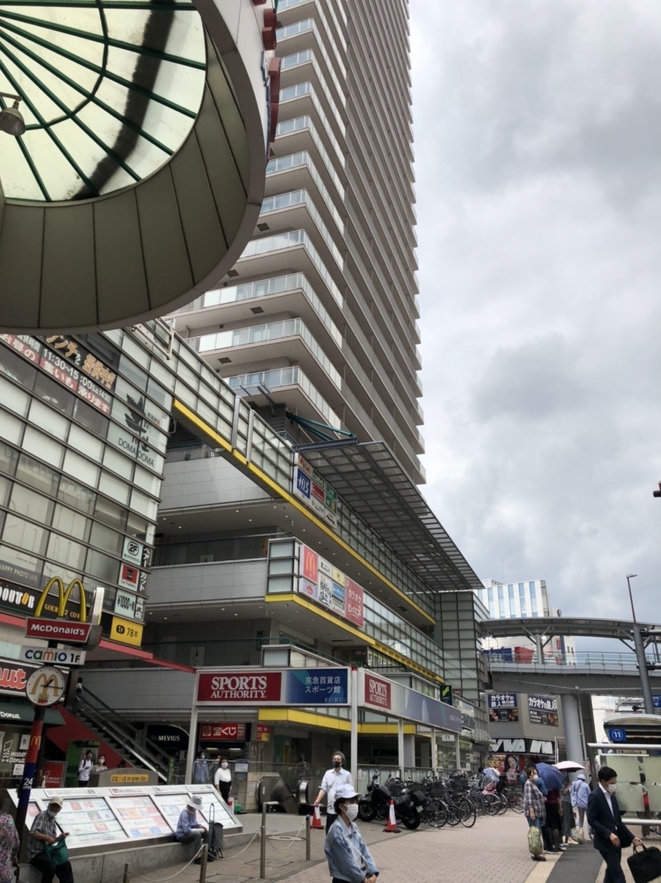 商業ビルとしては時代を感じさせる作りで、正直この場所にもったいない感はいなめませんが、地元の方には愛されているようです。ビルの手前に沢山のバス停が並んでいます。- 旅行時期