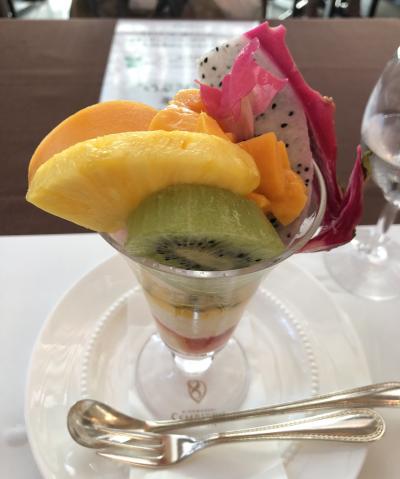 毎年いただいているクイーンストロベリーの時期はすっかり逃してしまったのは残念。気温の高い日だったので、トロピカルフルーツにひかれてトロピカルパフェにしました。