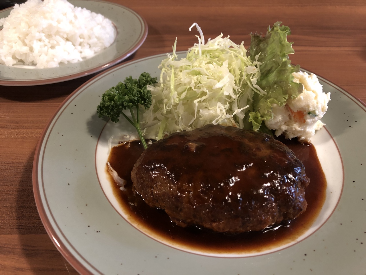 こちらのハンバーグは肉のひきが細かく、しっとりした焼き上がりでとても美味しいです。付け合わせのポテトサラダもおいしい(荒引き派の方だとお好みではないかもしれません)- 旅行時期