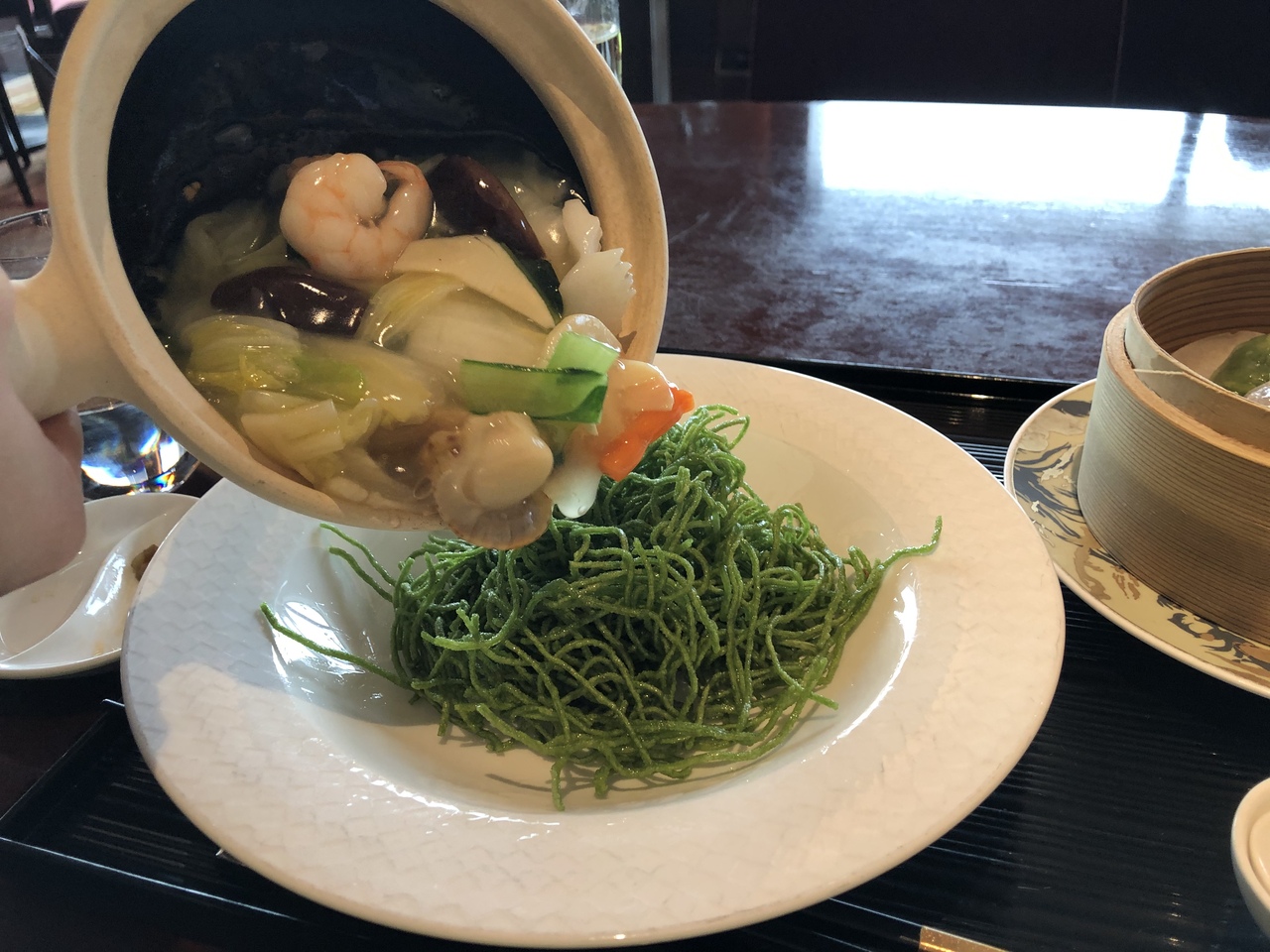 久しぶりに行ったら、春の翡翠麺のあんかけがあったのでつい頼んでしまいました。シーフードが沢山入っていて、非常にボリュームがあり良かったです。- 旅行時期