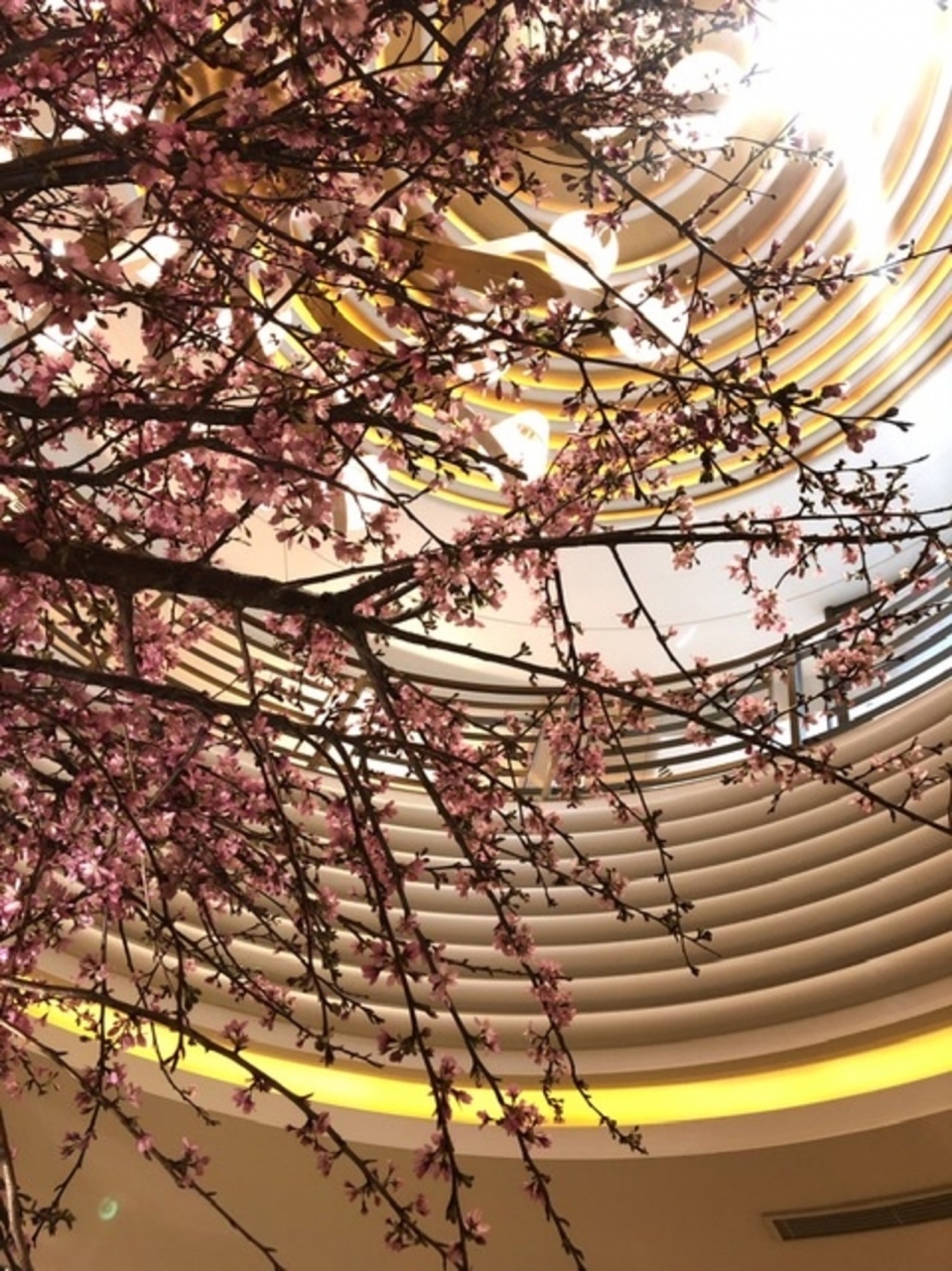 フロア中央には桜が飾られて、とても美しく、お花見気分を満喫できました。- 旅行時期