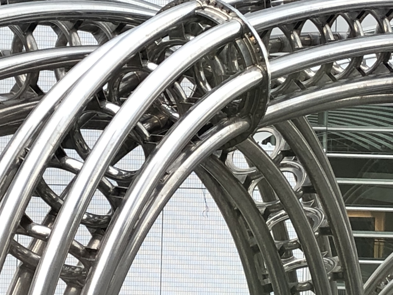 みなとみらいのランドマークプラザとクイーンズスクエアの間にある謎の巨大モニュメントがモクモクワクワクヨコハマヨーヨーです。1階を歩いていると下を通ってしまうので、2階以上を歩いていないと見ることができません。