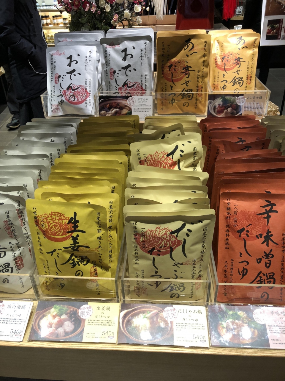 冬といえばのいろいろなお鍋のつゆパックも並んでいました。しゃぶしゃぶやおでんのもとなど、機会があったら買ってみたい。- 旅行時期