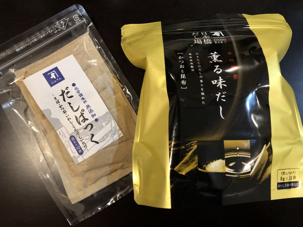 いろいろな種類のだしパックで非常に人気のお店です。種類が多すぎて迷ってしまう人のために、1パックずつのお試しセットもおいてありました。
