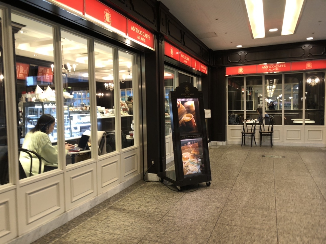 日本橋のマンダリンオリエンタル東京の1階のグルメショップは、ホテルのデリ&ベーカリーショップとカフェが併設になっています。カフェは席が少なく、しかも窓べりや外の席が多いので、冬に軽装の方にはちょっと不向き。(ストーブは設置されていますが・・・)