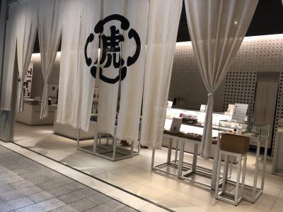 六本木のミッドタウンのガレリア地下1階、吹き抜けの広場に面したところに老舗和菓子店とらやがあります。隣には虎屋茶寮があり、いつも賑わっています。
