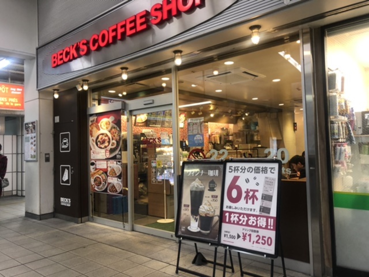 辻堂駅の改札外側にあるベックス・コーヒー。駅でよく見かけるチェーンのコーヒーショップです。