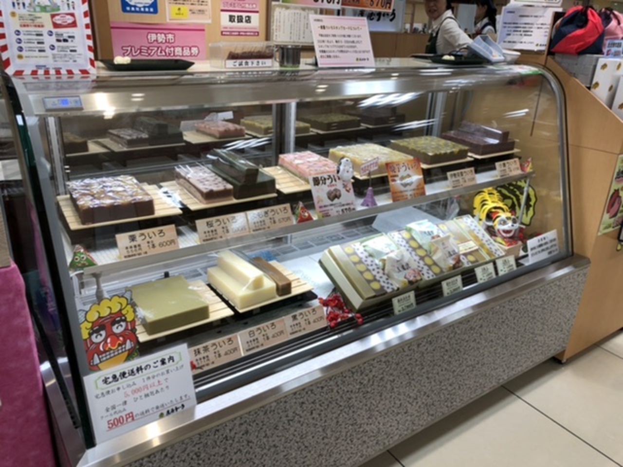 宇治山田駅の赤福はメインの出入り口のところにありますが、駅舎の横に併設されているタイムズ・プレイスの中もなかなか充実のラインナップ。虎屋ういろうもはいっていました。
