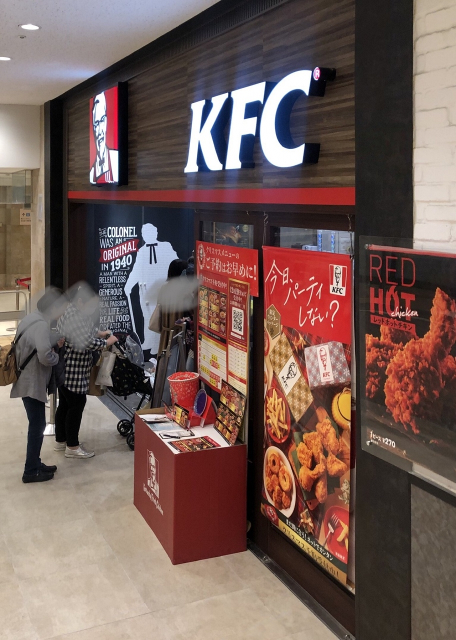 京急上大岡駅直結のショッピングモール、ウィングの地下のレストラン街に、ケンタッキー・フライド・チキンが入っています。手前にあるタリーズの方が広く目立ち、ケンタッキーの店舗は比べるとややコンパクト。