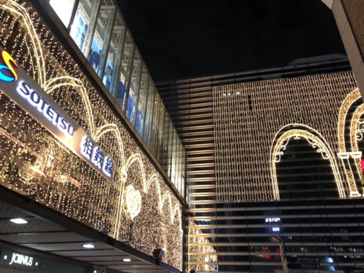 横浜駅西口のロータリーのイルミネーションの事だと思いますが・・・相鉄ジョイナスや高島屋の壁一面が、ハートをワンポイントにしたロマンティックのなイルミネーションに覆われています。