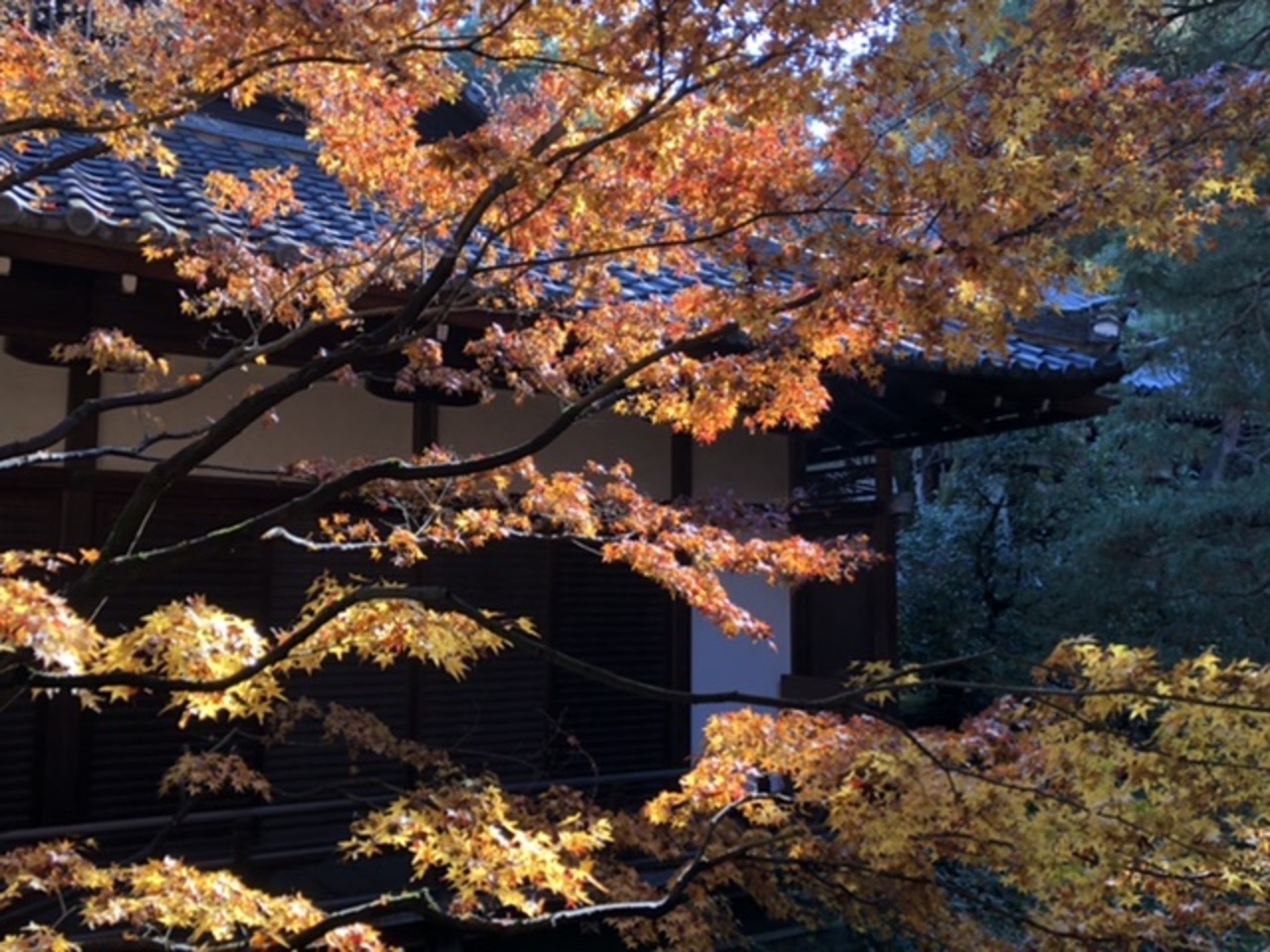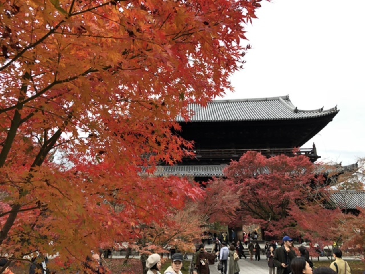 今回は直前に訪問した金戒光明寺の山門に登ったばかりだったので、こちらでは上りませんでしたが、周辺の赤い紅葉とのコントラストは素晴らしい絵になっています。- 旅行時期