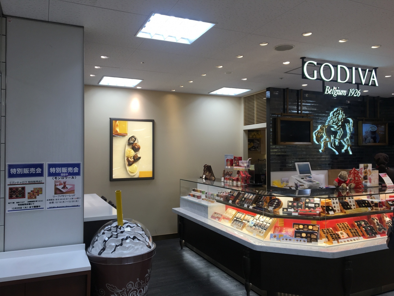 京急線、上大岡駅直結の京急百貨店 地下一階にあるゴディバ!可愛らしいチョコレートが沢山並んでいます。
