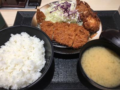 今回は奮発してロース&唐揚げ定食大盛をチョイス!+200円で唐揚げ2個付いてきたけど、大好物の人にはいいけど、まあまあかな?
