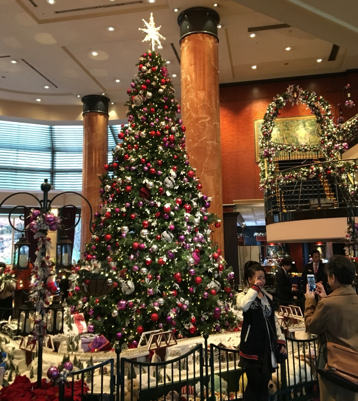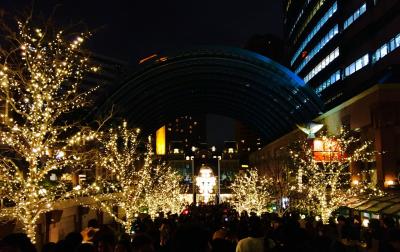 いつも快適なガーデンプレイスですが、クリスマス時期は一層華やかです。中央に出現するバカラのシャンデリアはすごい迫力です。- 旅行時期