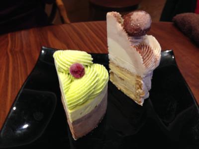 気になるアントルメを、2階のカフェではカットして何種類か選んで食べられます。