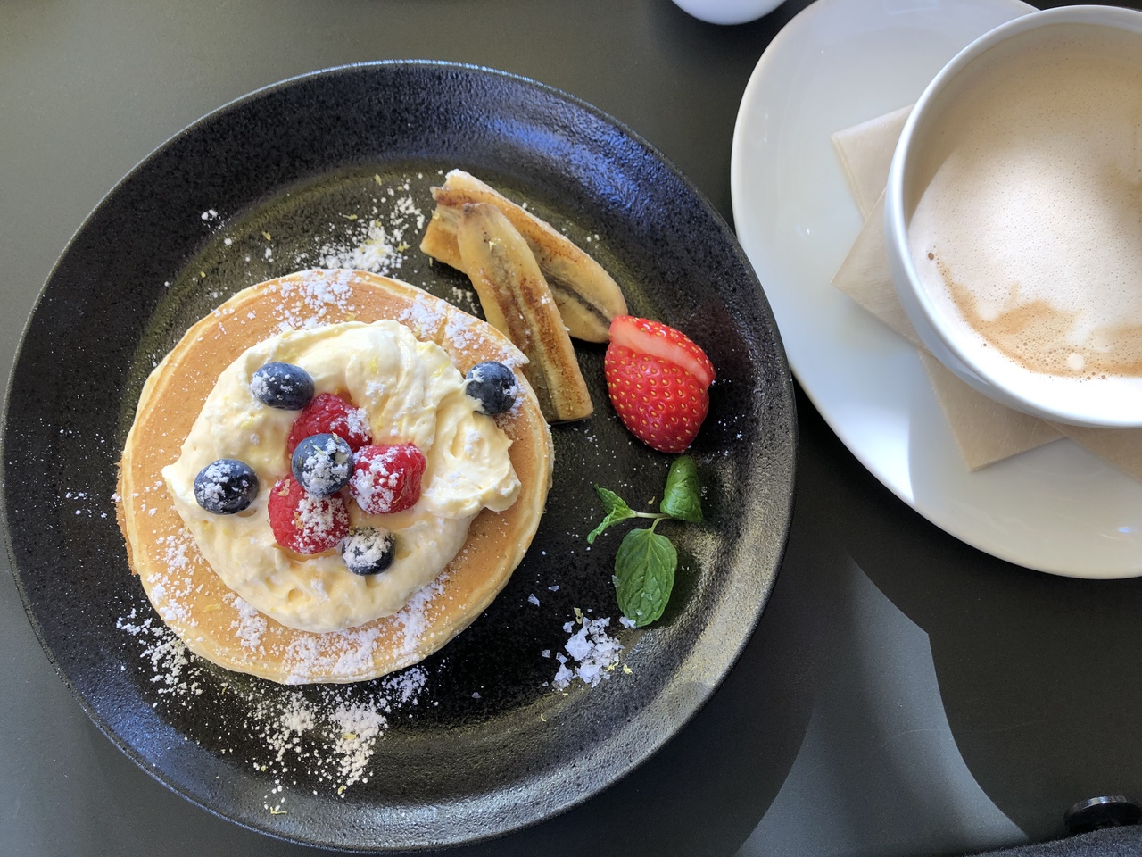 モーニングメニューのパンケーキは3段重ねでボリュームもたっぷりでした!- 旅行時期