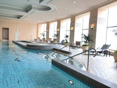 こちらは高層タワーのホテルなので、お部屋はわりとコンパクトなのですが、宿泊中に利用できるスポーツクラブのプールがとても豪華で気に入っています。ホテル宿泊時にはひと泳ぎという方には特におすすめ。