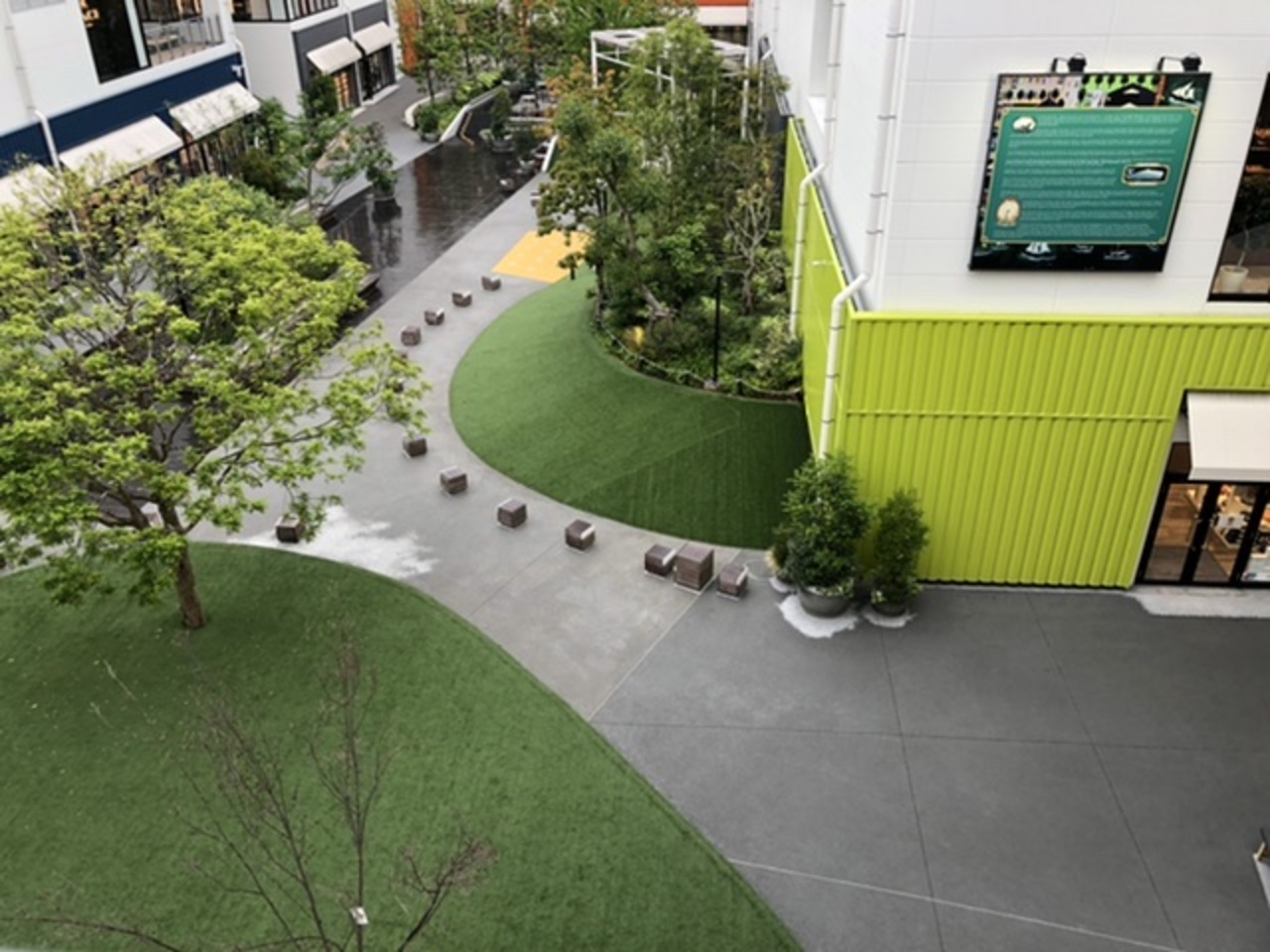人の集いやすかった中庭のエリアは、以前はもうすこし人工芝が広かったように思うのですが、コロナ対策もあってか、いつのまにか少し直されているようです。