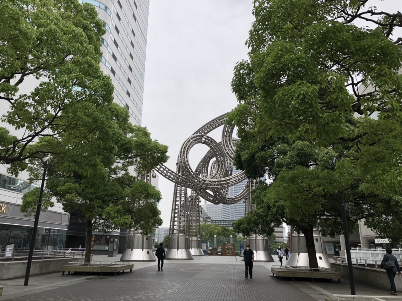 モクモク・ワクワク・ヨコハマ・ヨーヨーはビルの間の強風を軽減するために建てられた建造物だそうです。