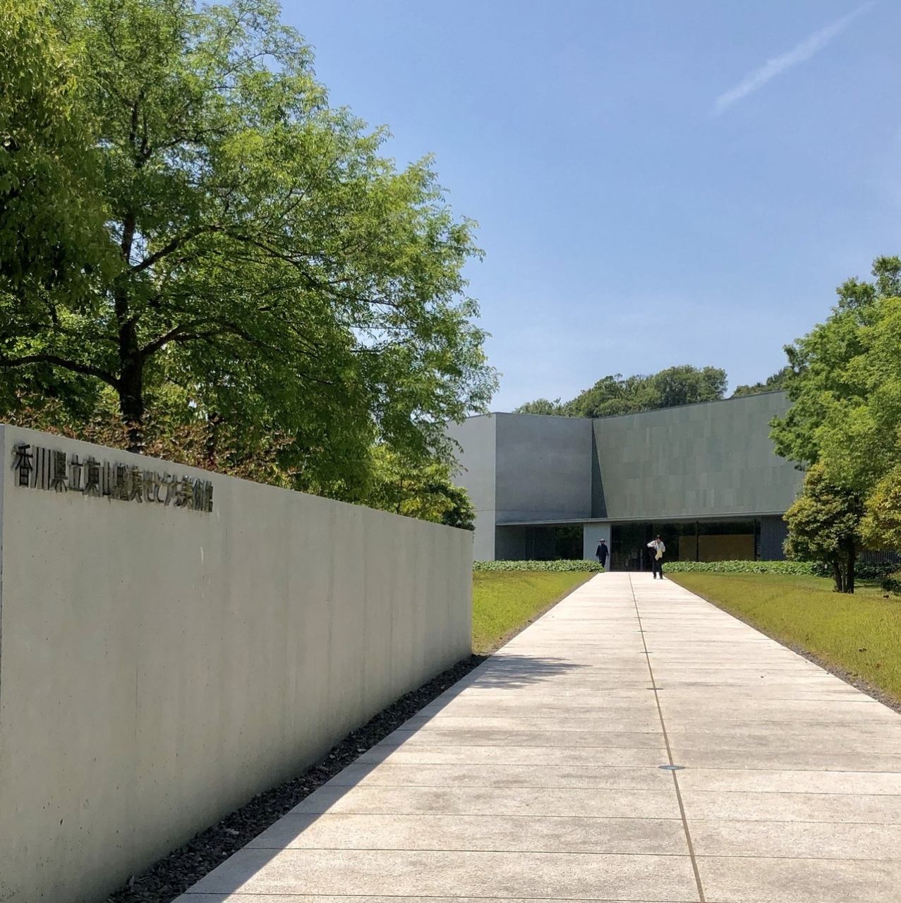 このエリアは瀬戸大橋の香川県がわの起点で工業団地の側面もあります。 写真は香川県立東山魁夷せとうち美術館のエントランスです。 ここは芸術祭に直接入っていませんが、チケットを持っていると入場料が2割割引になります。65歳以上は無料です。