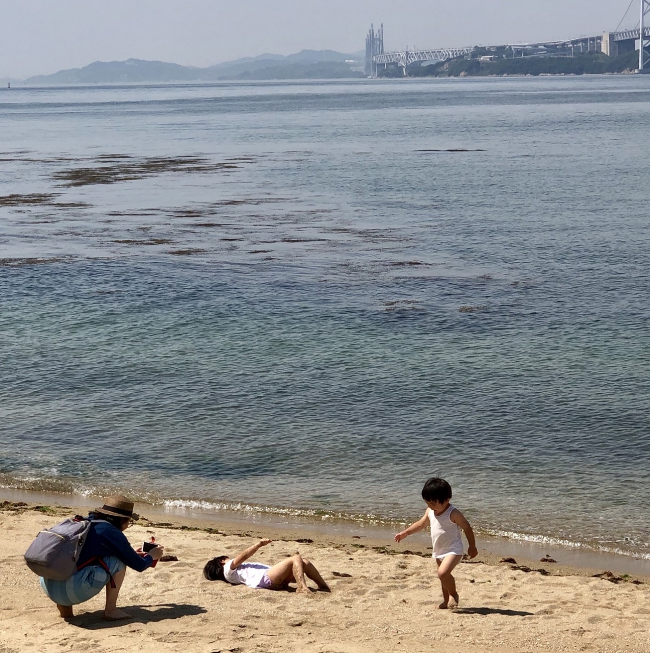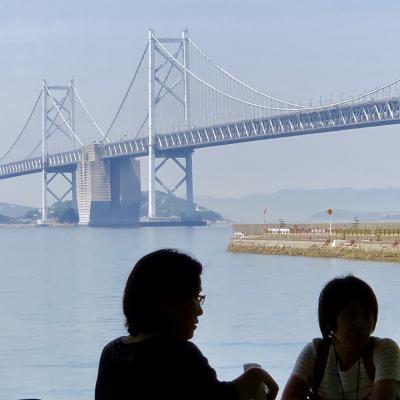 美術館の中には地元の銘菓である「かまど」のカフェがあります。 写真のように瀬戸大橋が望める眺望です。