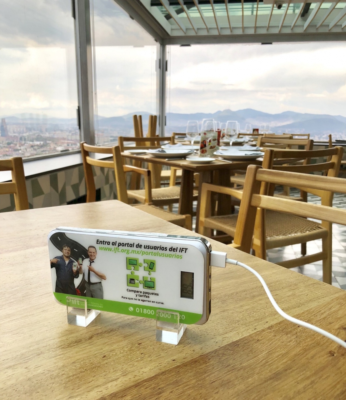 スマホの充電は縦型のバッテリーをテーブルに持って来てくれます。USBが同時に2本させます。