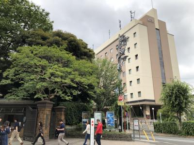 目白駅から濡れずに行けるホテルです。左奥は学習院の正門です。部屋からは学習院の緑が望めます。