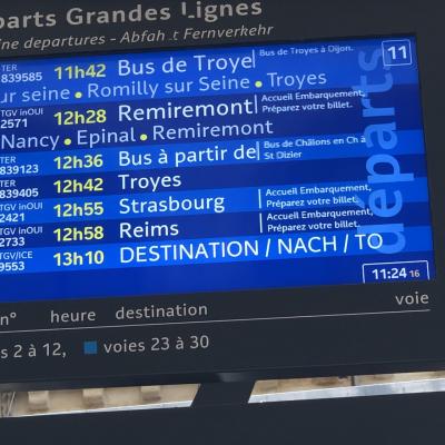 ノジャンシュルセーヌという100kmくらい東南東の駅へ行く時やルクセンブルク国へ行く時のSNCFはパリ東駅発でした。