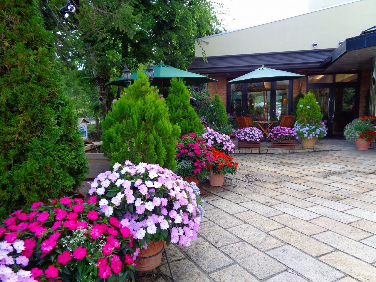 このホテルの特徴はエントランスは美しい花々で飾られていることです。