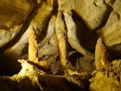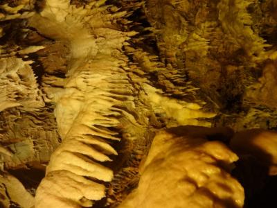 洞内は年間平均気温18°Cで夏は涼しく冬は暖かく感じるため、快適な地底を冒険できるとの触れ込みですが、富士山麓の風穴や氷結に比べて平均気温が暖かいのは海抜と深さによるものでしょうかーーこの鍾乳洞は全長1kmもあるそうですが、現在公開されているのは約400mだそうです。