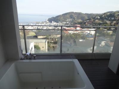 お部屋は普通ですが、売りは眺望抜群の部屋付きの半露天風呂です。