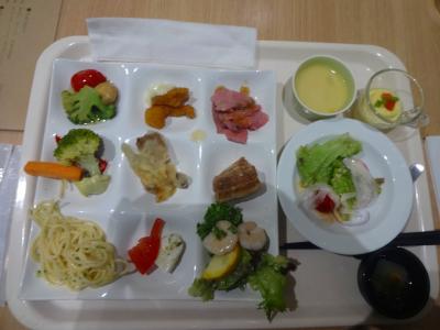 夕食はビュッフェ形式ですが、他にチョイスがないので致し方ないですね。