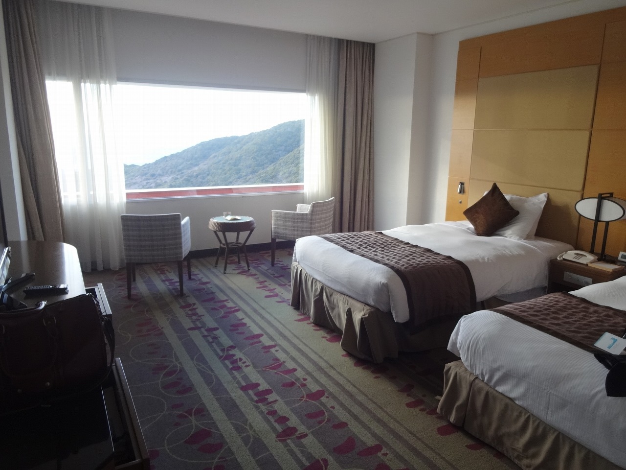 お部屋は30㎡以上のデラックスツインルーム。その眺望!