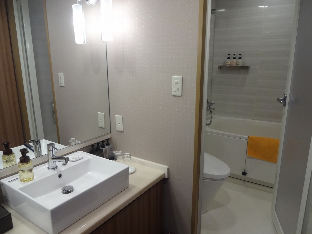 洗面は普通ですが、この左手には別のシンクもあり、コーヒーやお茶を入れたりするのも便利ですね。