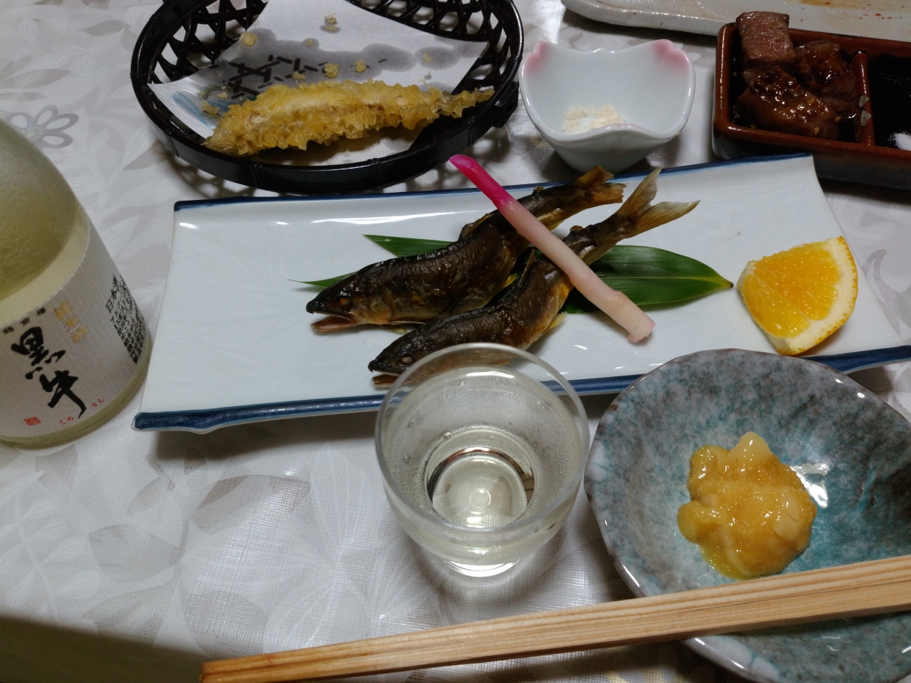 山間の宿らしく鮎は焼き天ぷらと堪能。