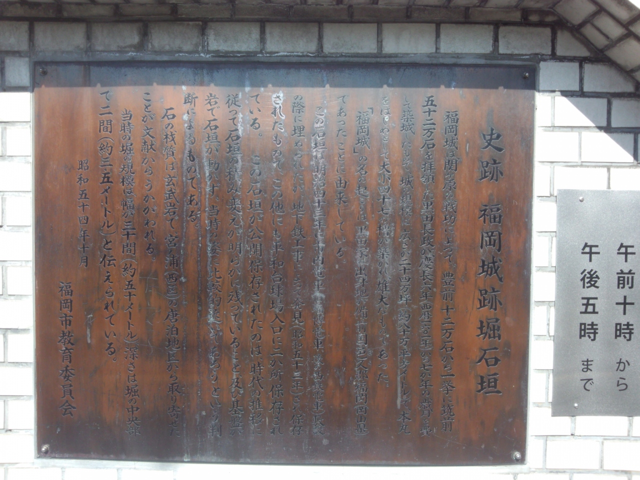 何気なく入っていると、都市開発のために地価となってしまった福岡城史の石垣が。
