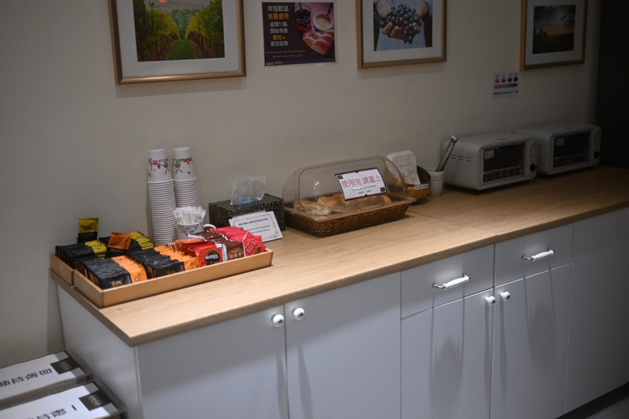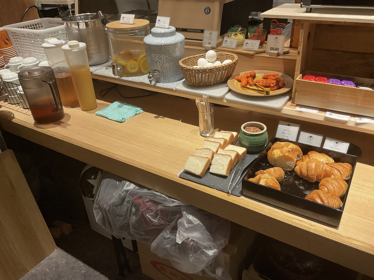 1階のフロアにフリードリンクやパンがありました。共用の冷蔵庫もそこにはありました。