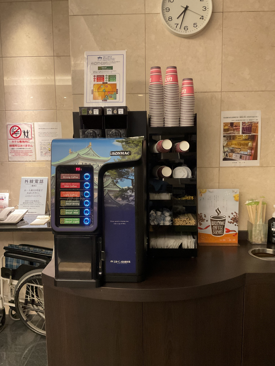 フロントには無料で頂けるコーヒーマシンがありましたが、ホットのみでした。
