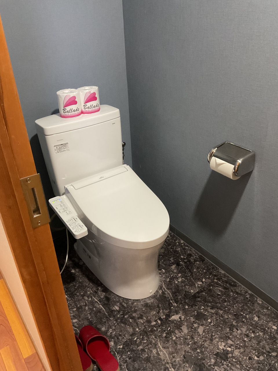 客室は2階で階段はややきつく、お風呂は1階にありバリアフリーとしてはやや厳しいと思います。