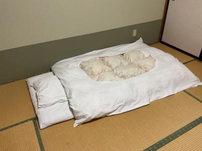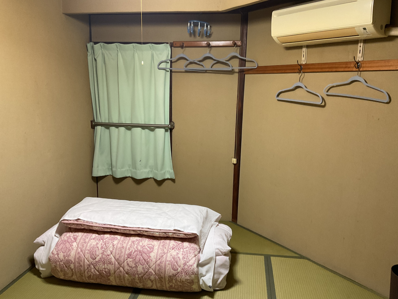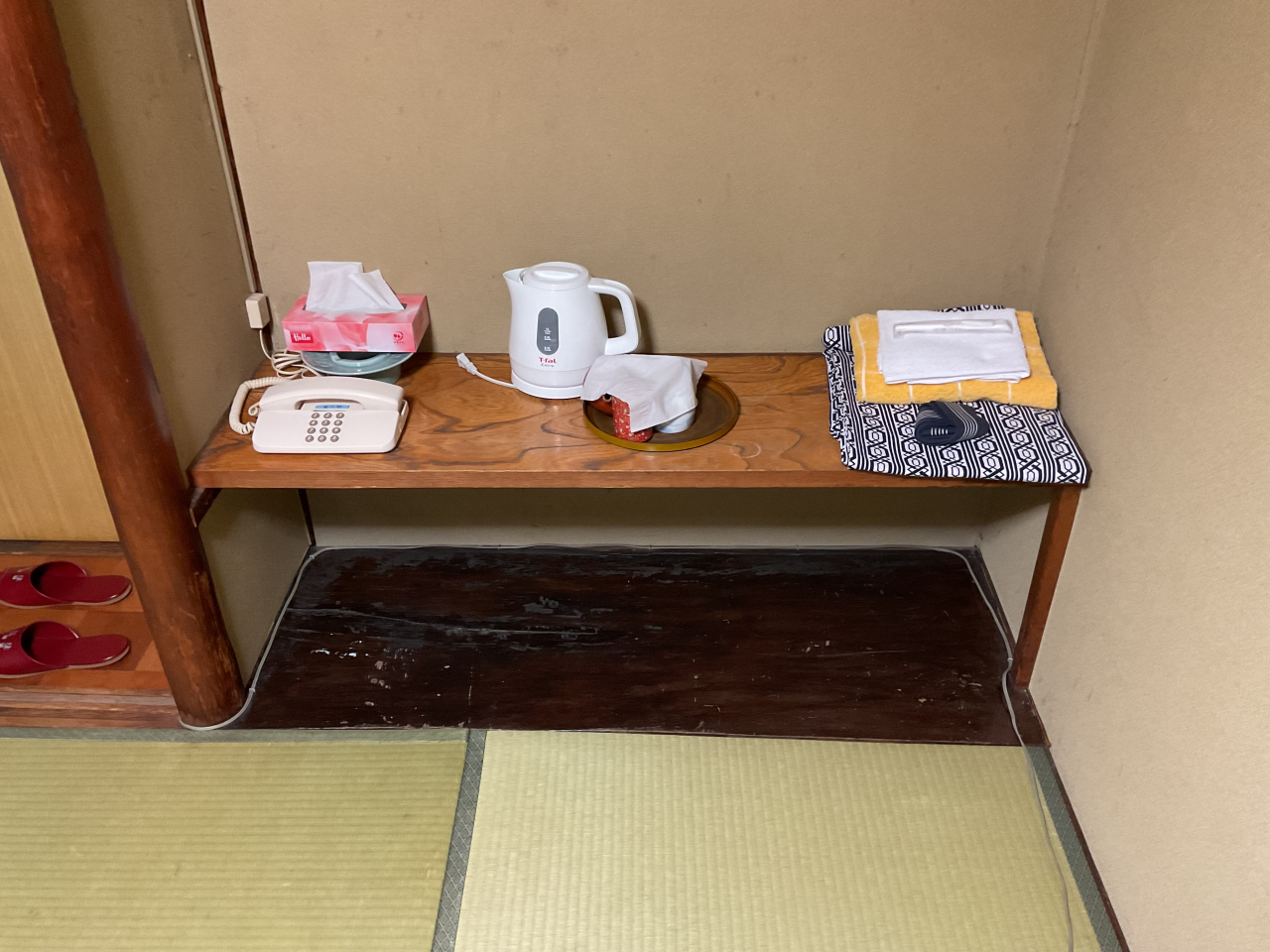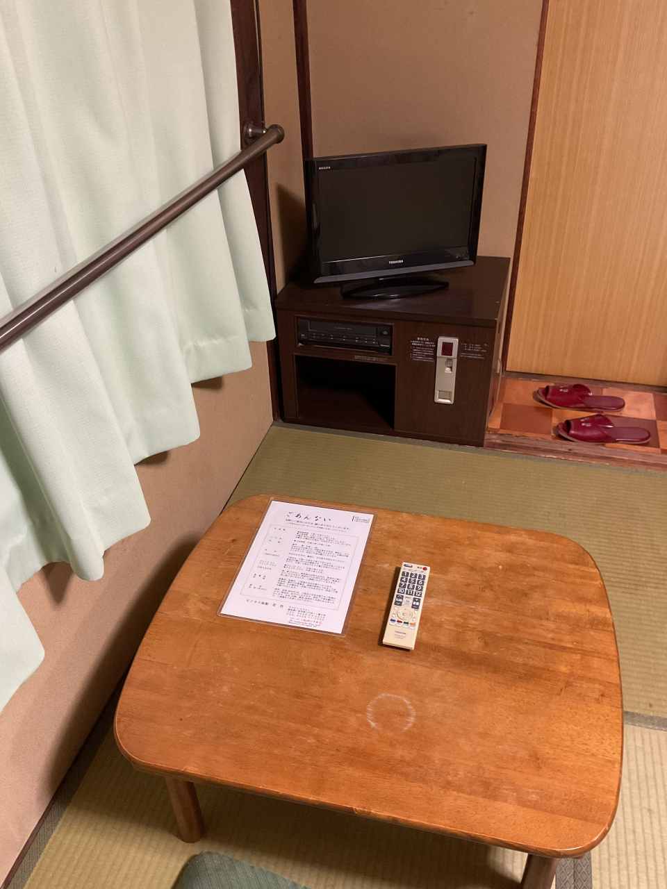 旅館は昔ながらな感じで、和室、トイレとバスは共同利用です。