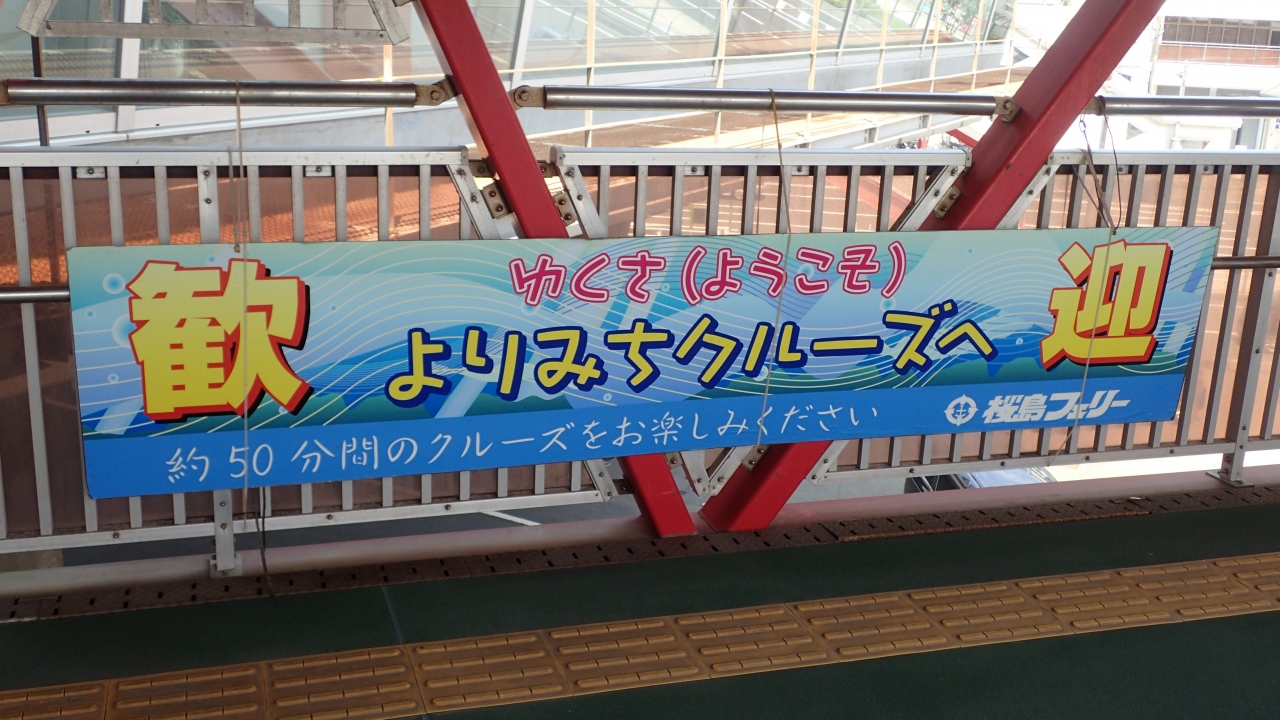 たまたま行ったタイミングで、真っすぐ桜島へ行くのではなく、少し遠回りして桜島へ向かうよりみちクルーズ出向のタイミングでした。せっかくだからよりみちクルーズに乗りました。定期船は通常200円ですが、よりみちクルーズの場合は600円になります。毎日11:10発の1便のみです。
