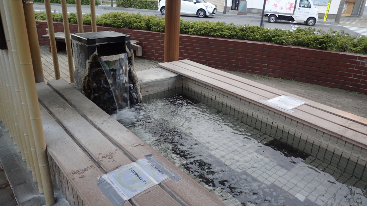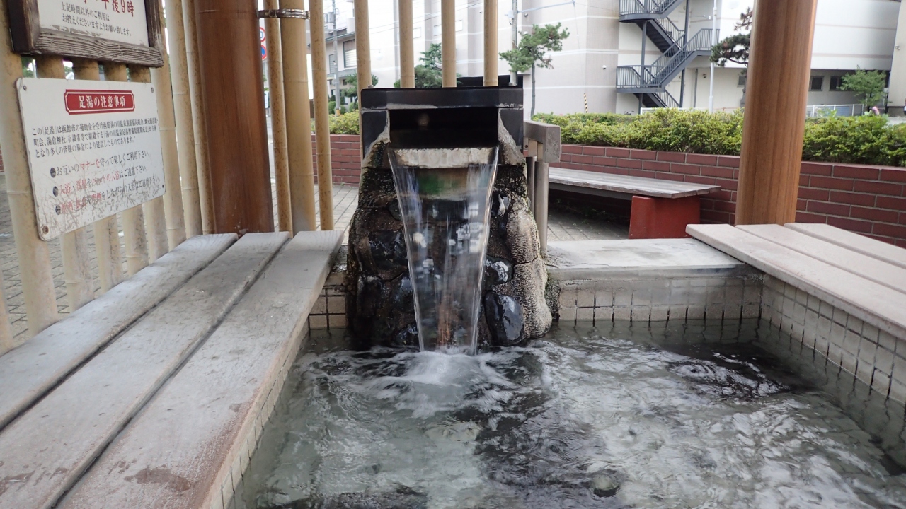 市電の駅近くで、空港からのバス停も近く、とても立地が良い場所に足湯があります。