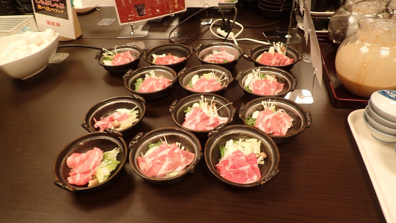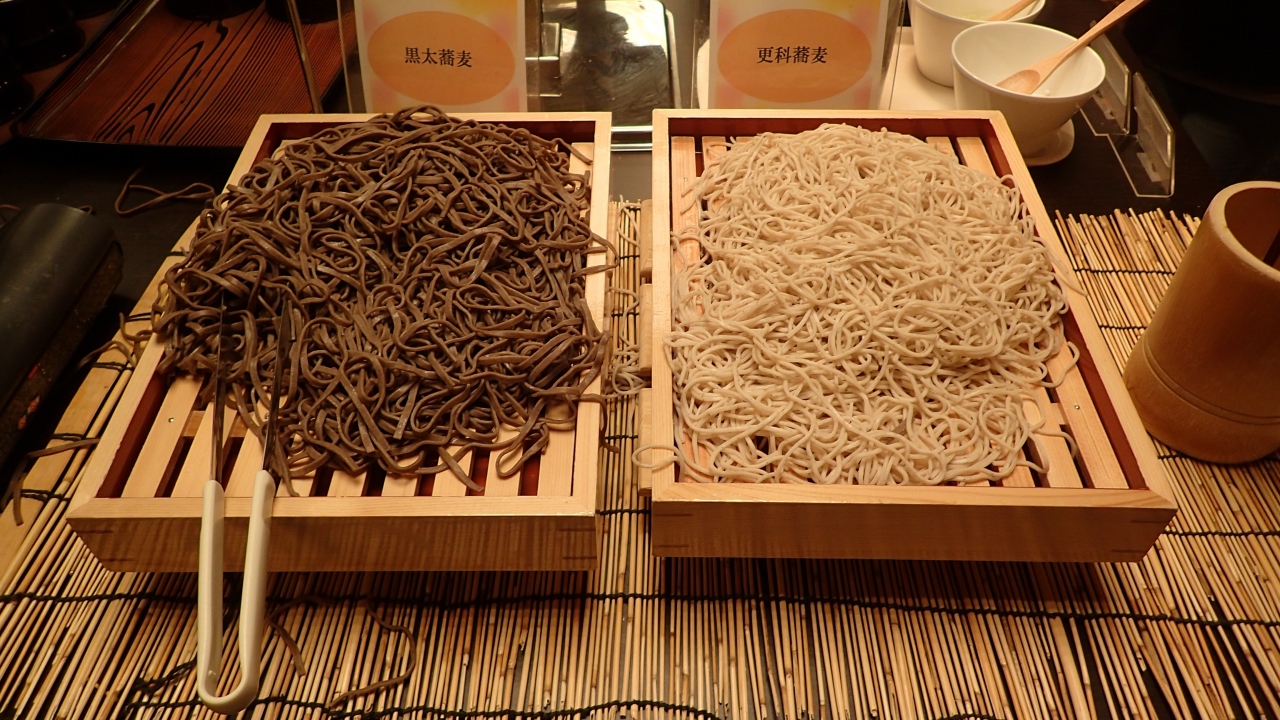 夕食と朝食が付き、どちらもビュッフェスタイル 松本ならではのそばがあったり