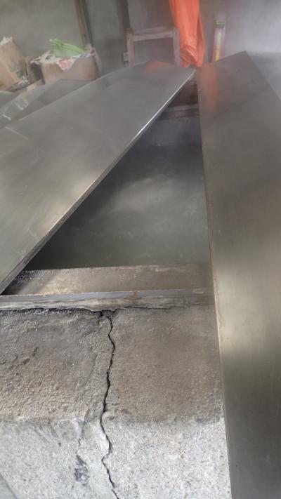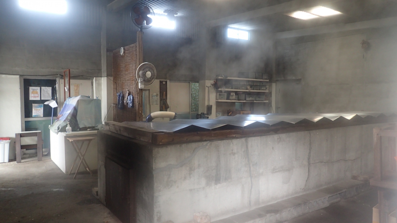 釜を焚いている海水の様子を見せてくれました。釜はガスではなく薪を焚いているとの事。夏に行きさらに釜付近では熱気ムンムン!