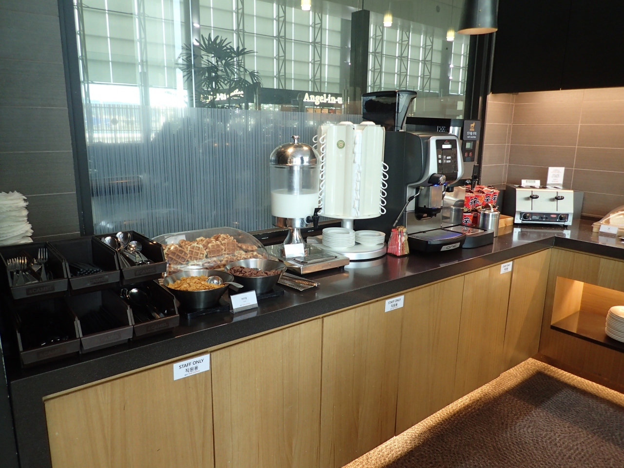 釜山の空港国際ターミナル内でプライオリティパスにて入れるラウンジですが、同じくプライオリティパスで入れるエアプサンラウンジよりもとても混んでいます。料理やドリンクに品数が多いですが、料理はイマイチであまり美味しくはなかったです。少し休憩するには良いと思います。